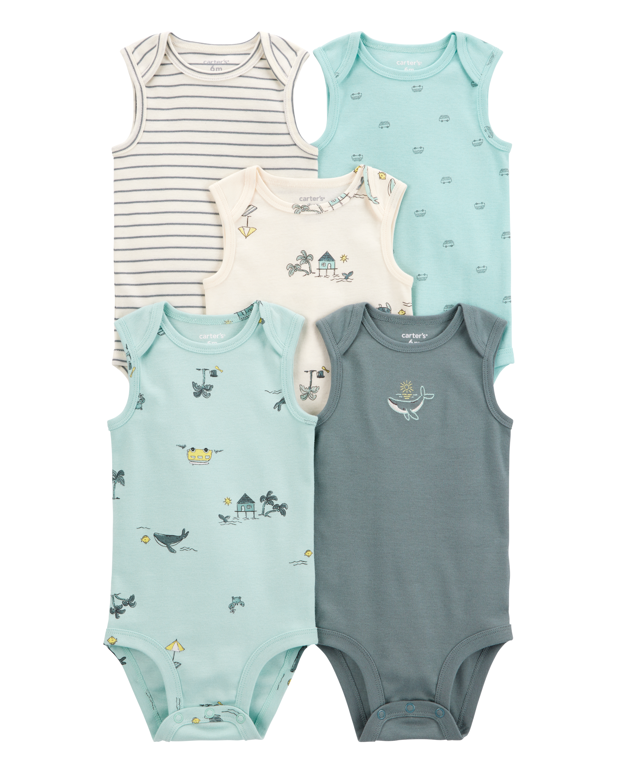 Carter's Baby 5-Pack Ocean Print Sleeveless Bodysuits
