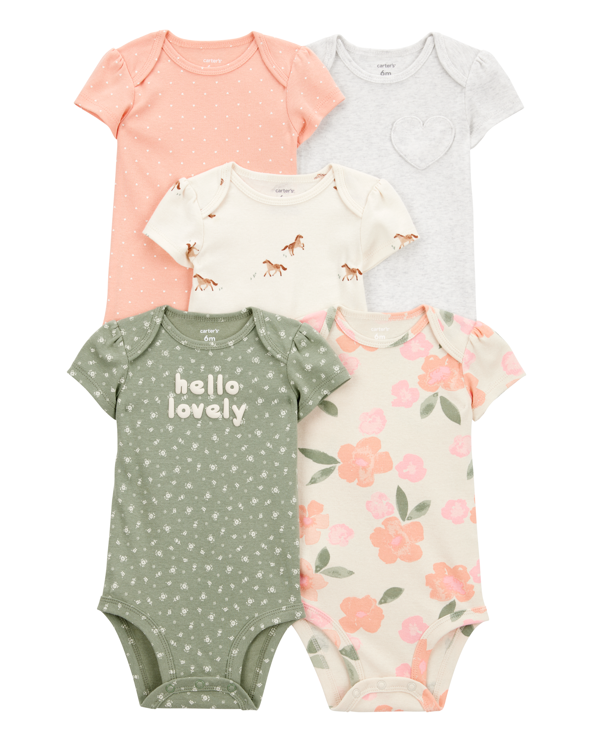 Carter's Baby Boy 5-Pack Solid Short-Sleeve Cotton Bodysuits