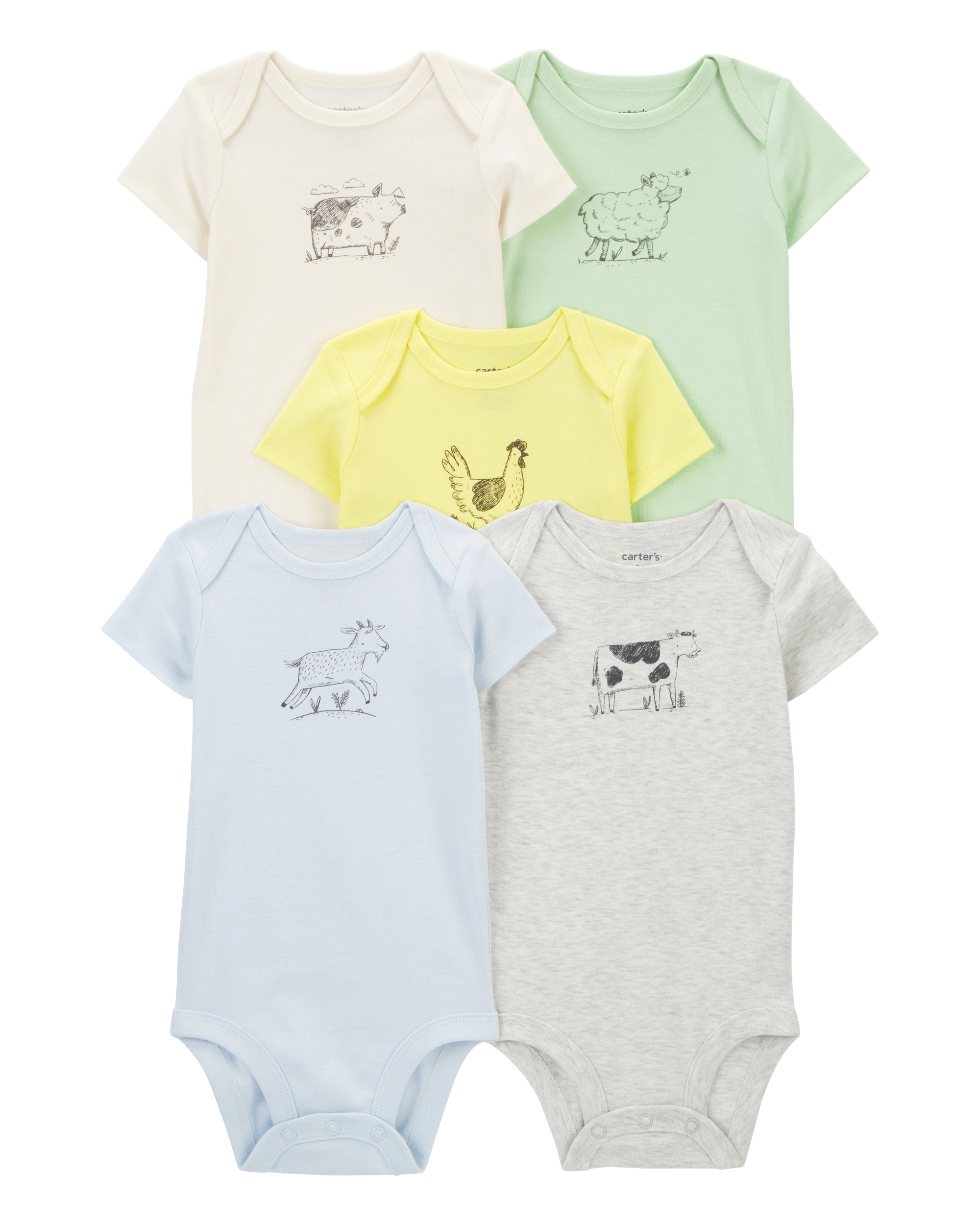 Carter's Baby 5-Pack Farm Animal Short Sleeve Bodysuits