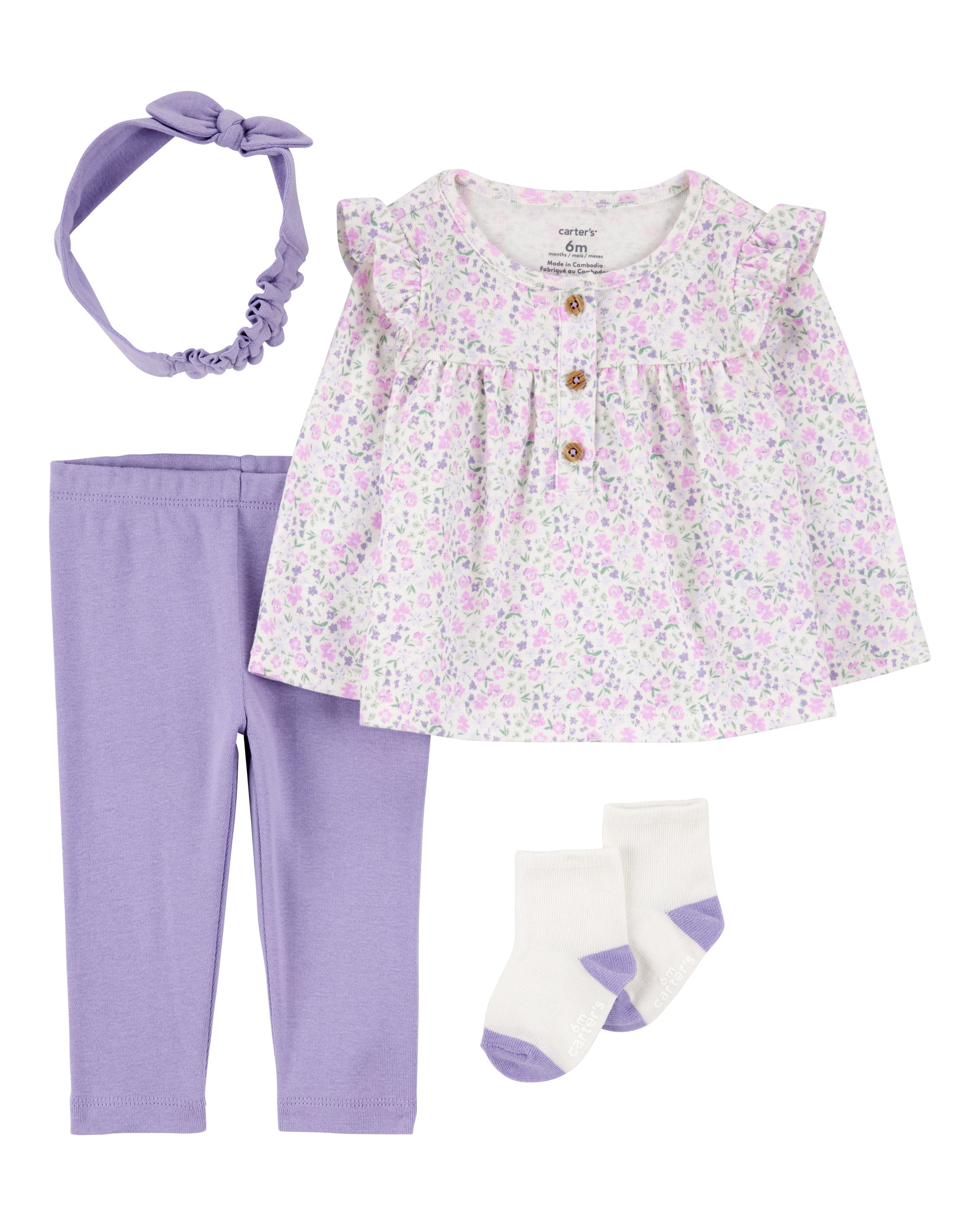 Carter's Baby 4-Piece Floral Outfit Set - Purple - Purple